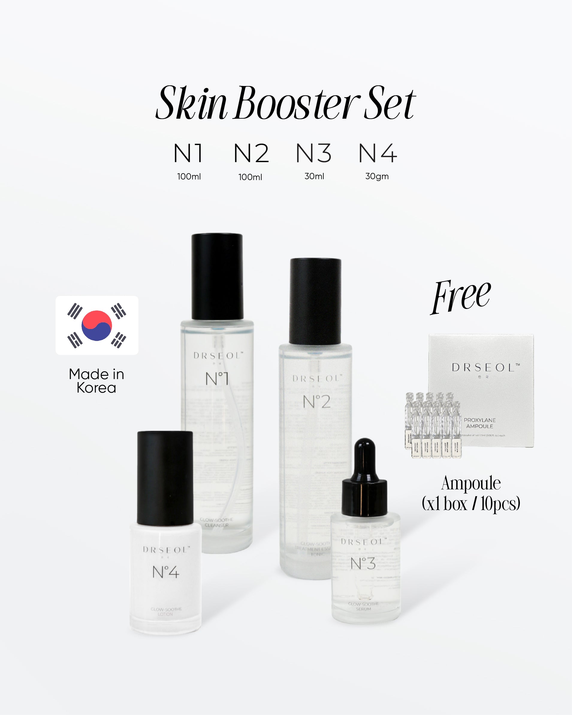 Transform your skin with our Skin Booster Set. Our products are specifically designed to improve collagen production, resulting in a youthful and radiant complexion. Get ready to achieve that coveted Korean "glass-skin" look with our anti-aging formula.